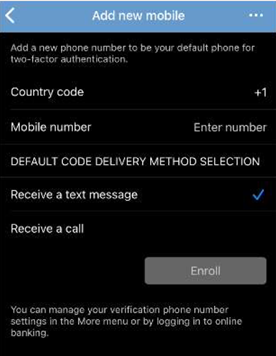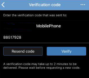 See below picture. Enter the One-Time-Passcode that was sent to your Mobile Phone and tap Verify.